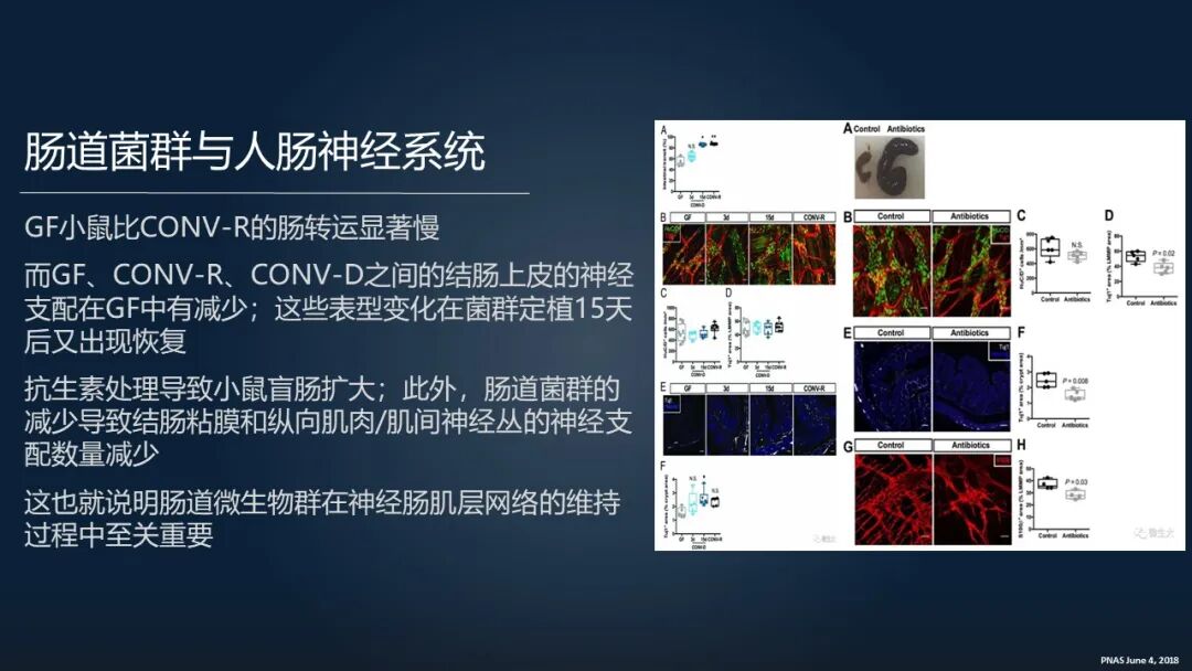而且还有研究发现,肠道微生物菌群它是出生后的小鼠肠道黏膜神经胶质细胞发育必须的。