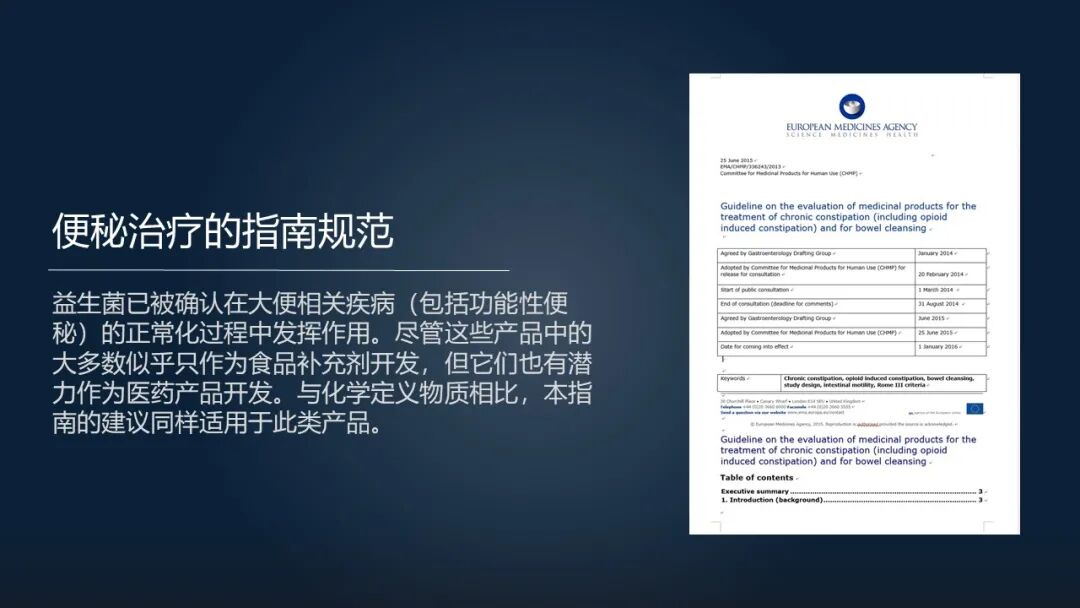 这是 2016 年欧洲的便秘的治疗指南。当中提出了益生菌已经被确认在大便相关疾病,包括在功能性便秘的一个正常的过程中其发挥的作用。