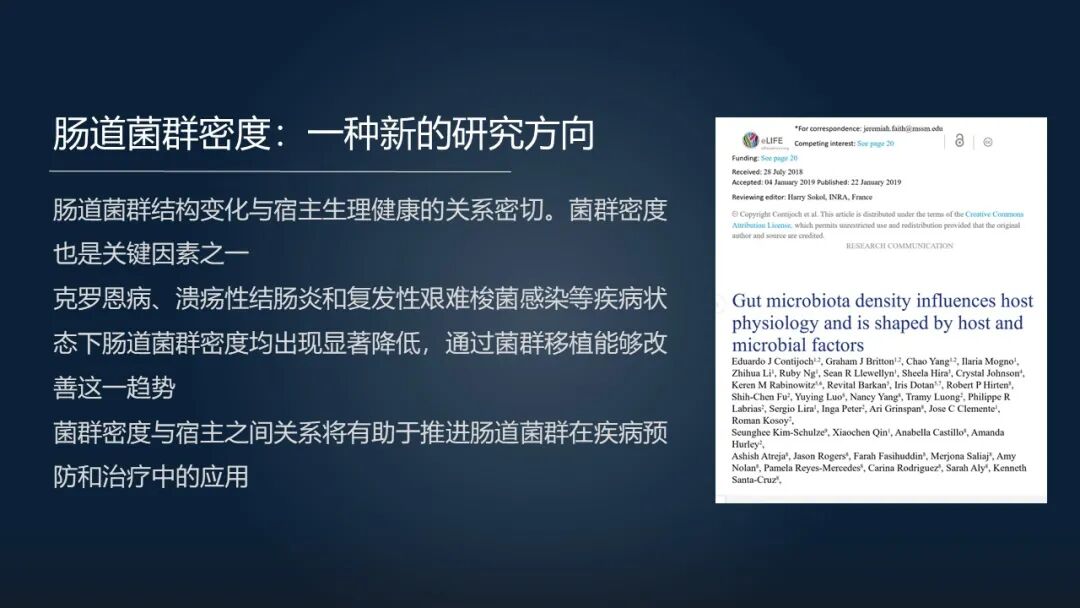 同时,肠道菌群密度也成为现在当前新的一个研究方向,肠道菌群密度和宿主之间的关系往往有助于推进肠道菌群在疾病的预防和治疗当中的应用。