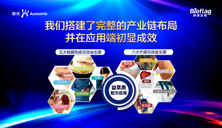 第二,就是我们搭建了一个完整的产业链布局,并且在应用端已经初见成效了。我们在功能型益生菌的选择上,比如说有针对像口腔的,胃溃疡的,还有私密保养的,还有保肝的、降尿酸的等等。