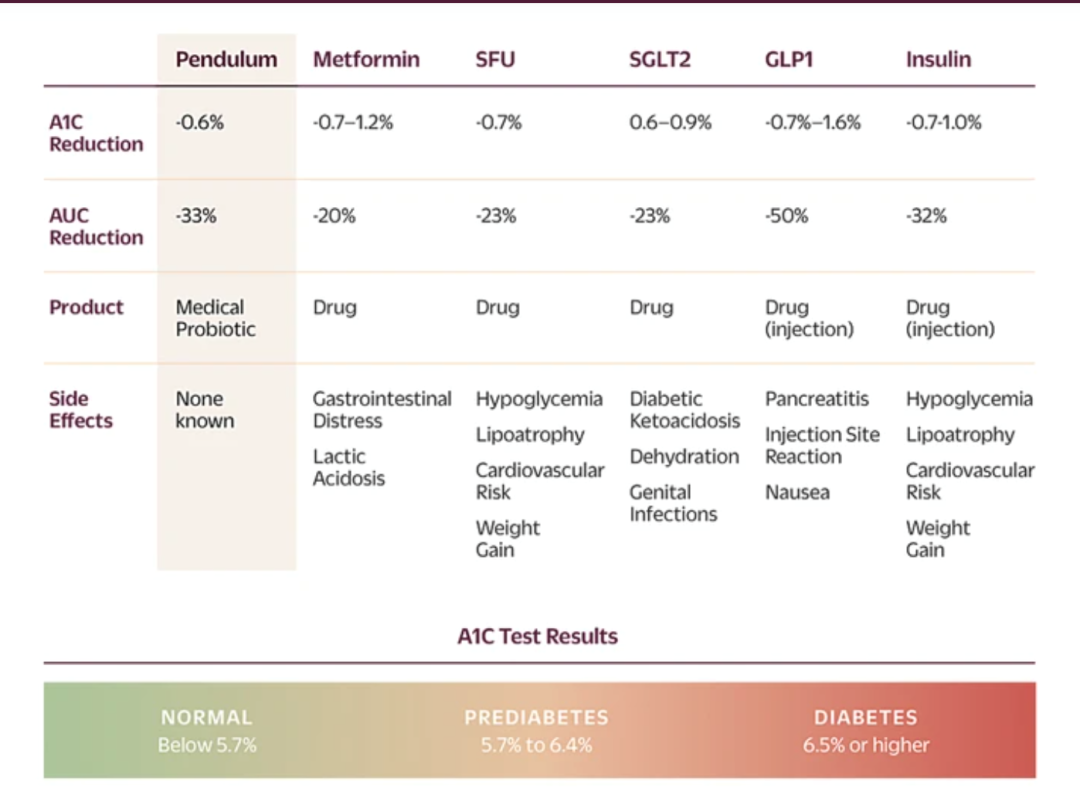 今年 6 月 4 日,该公司宣布推出其针对 2 型糖尿病的益生菌产品——Pendulum Glucose Control(PGC),这是首个也是唯一一个经过临床实验证明的可用于临床的益生菌产品。据介绍,该益生菌产品能够有效降低 A1C 和血糖峰值。
