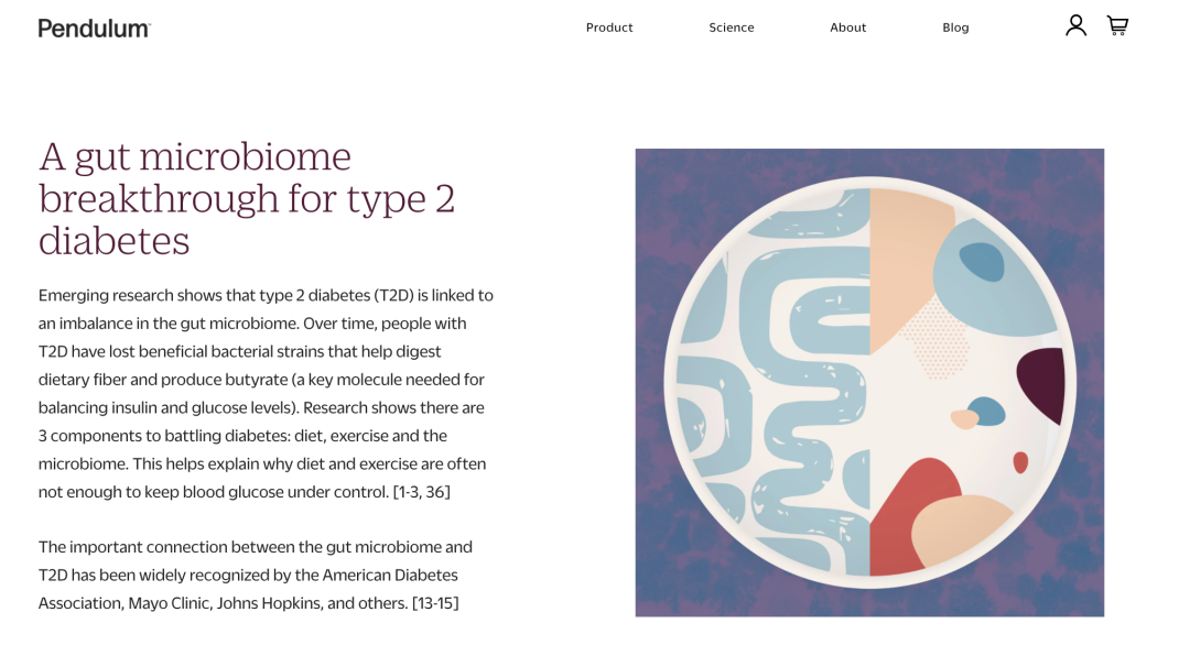 确实,Pendulum 公司的官网通过通俗易懂的语言解释了微生物组的重要性、产品的原理和产品的特点等问题,并且还解答了消费者的困惑,比如特医益生菌的优势等。