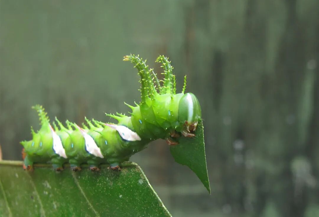 这种生活在哥斯达黎加的毛毛虫可能不需要一个永久性的肠道微生物群来提供营养,因为它在雨林中吃树叶的时候获得了大量多样的营养物质。图片来源:Tobin Hammer