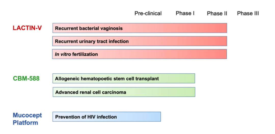 除了 Lactin-V,目前,该公司还有 2 款在研产品,分别是 CBM-588 和 Mucocept。