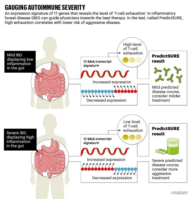 Smith 的团队发现,相对严重的衰竭状态与持续且激烈的自体免疫性疾病的低风险相关。通过检查这种衰竭的基因指标,该测试为 IBD 的爆发提供了可预见的窗口期——临床医生可以借此定制治疗方案。