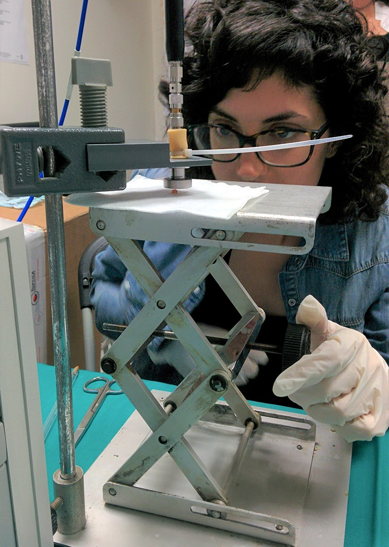 图.MiWEndo Solutions 公司的一位研究员正在检查结肠息肉。该公司的技术使人们可以更容易地发现结肠中的细胞团块。图片来源:MiWEndo Solutions