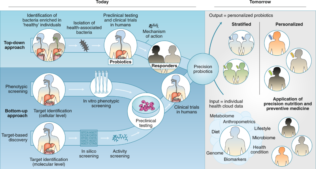 如果确定了宿主反应和/或作用机制的决定因素,那么,通过自上而下策略开发出的益生菌,最终就可能成为精准益生菌(图1)。