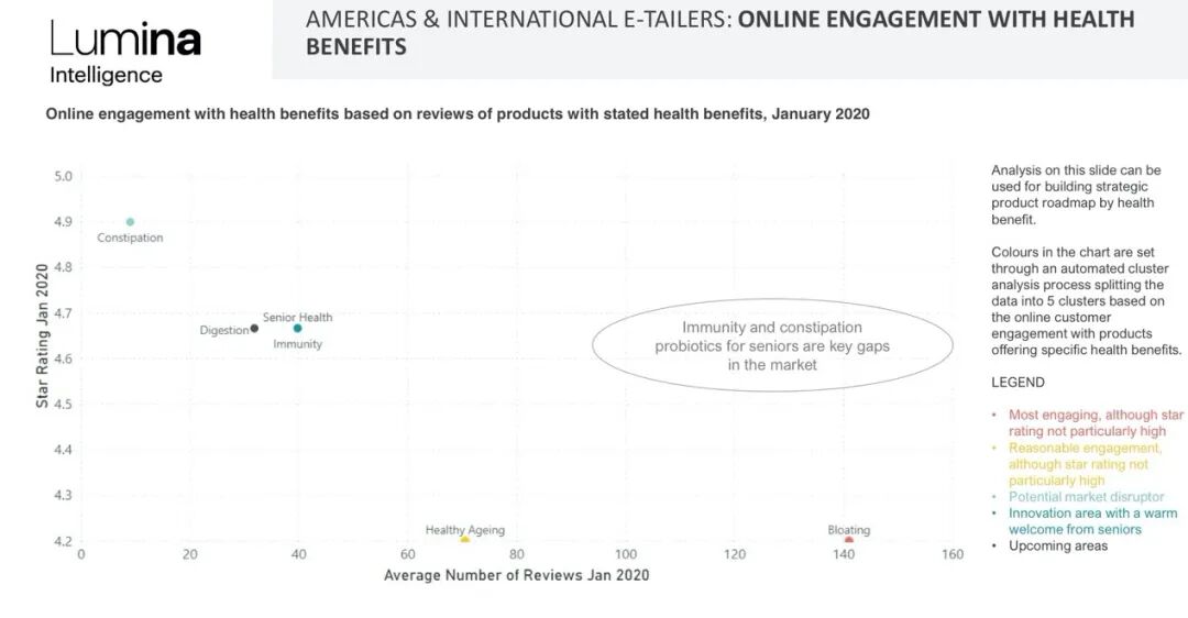 根据 Lumina 的报告,市场上关于适用于老年人的免疫和便秘益生菌制剂还是一大空白,这其中蕴藏着巨大的商机。