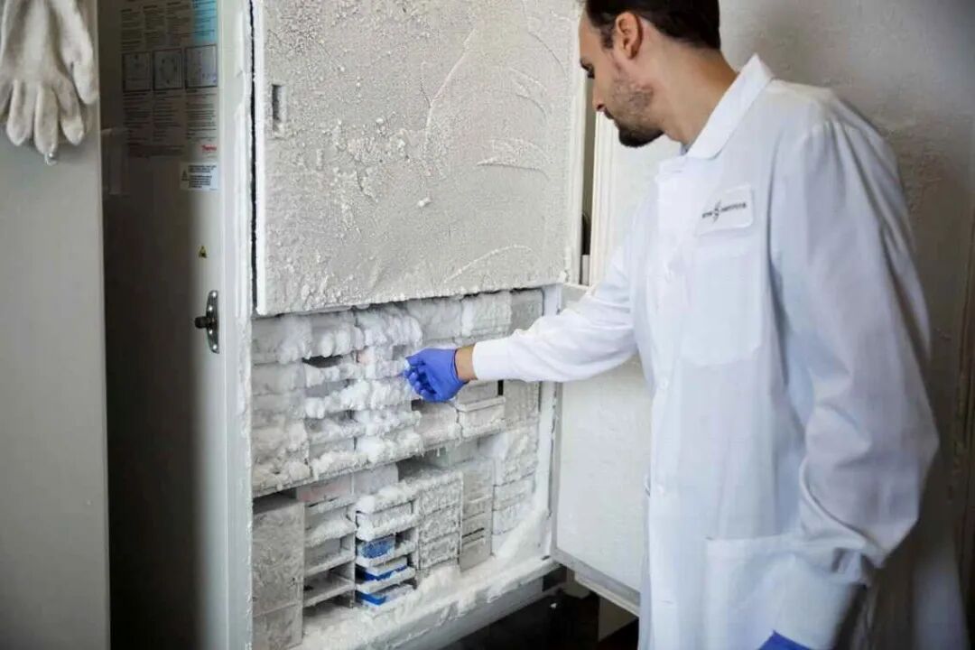 在哈佛大学 Wyss 研究所有一台巨大的冰箱,如果你打开这一台冰箱的门,就会发生科幻电影中的场景,滚滚白气扑面而来。这台零下 80 摄氏度的冰箱里放着几十个盒子,每个盒子上都布满了白色的霜。