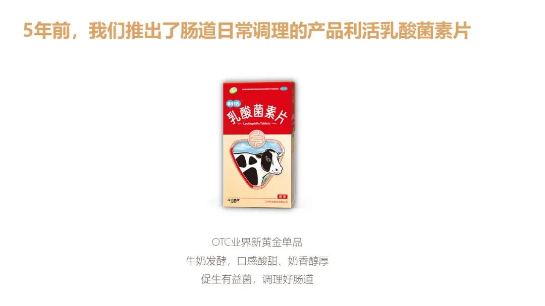 5 年前,我们又推出了江中利活牌乳酸菌素片,纯牛奶发酵,酸酸甜甜,奶香醇厚,那么乳酸菌素片现在也成为我们 OTC 界的新的、大的黄金单品,我们这款产品的零售额也已经 8 个亿。未来成为行业以及成为江中新的 10 亿单品完全可期。