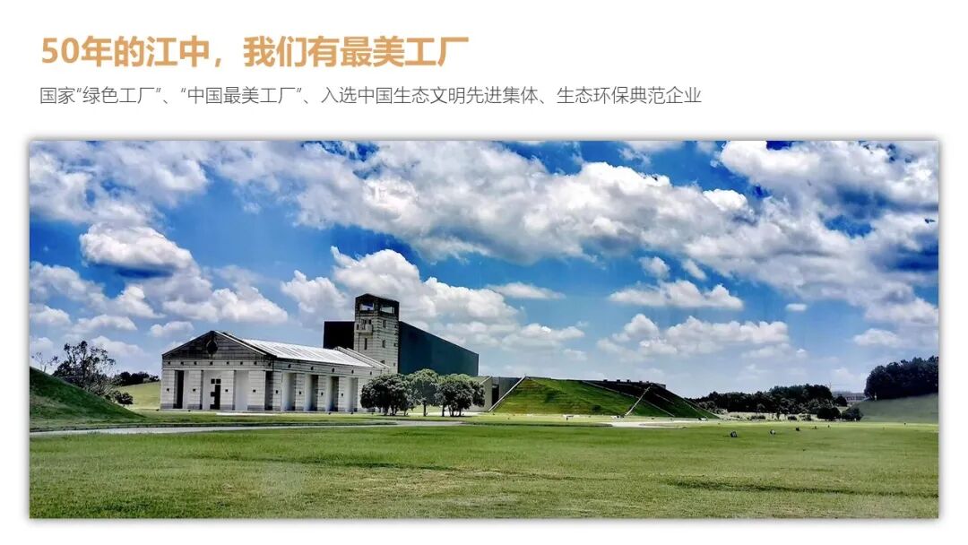 50 年江中,我们有中国最美工厂——3000 亩生态药谷,它是中国最美工厂、中国绿色工厂,也是在中国制造业里面唯一一个获得中国生态文明先进集体的制造业。