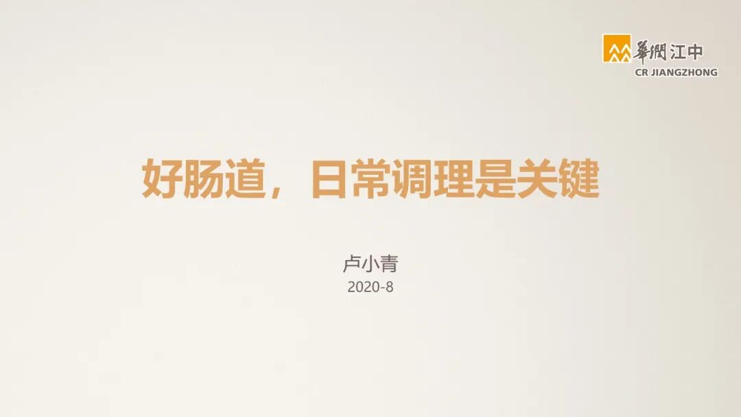 因为疫情的影响,这次大会以线上的方式开展。这是一种特别的体验,也具有一种特殊的意义。我今天给大家分享的题目是《好肠道,日常调理是关键》。