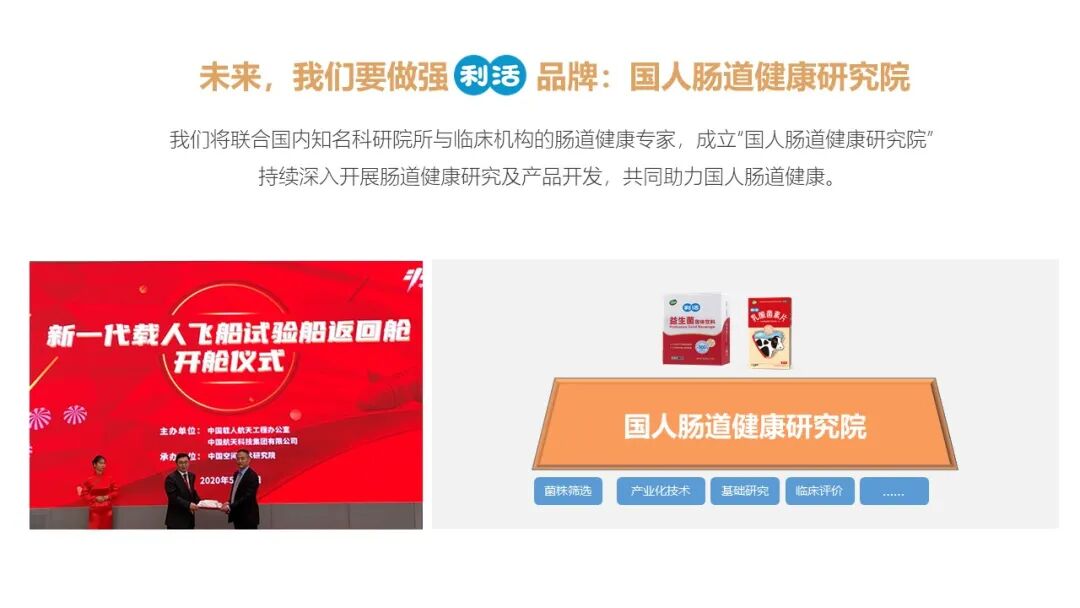 除了说我们在改造肠道环境的利活乳酸菌素片以及我们再补充活菌的利活混合益生菌以外,我们还会联合全国的科研院所以及专家来深入进入药物的开发,包括在免疫系统、神经系统以及消化系统来全方位为国人的肠道健康保驾护航。