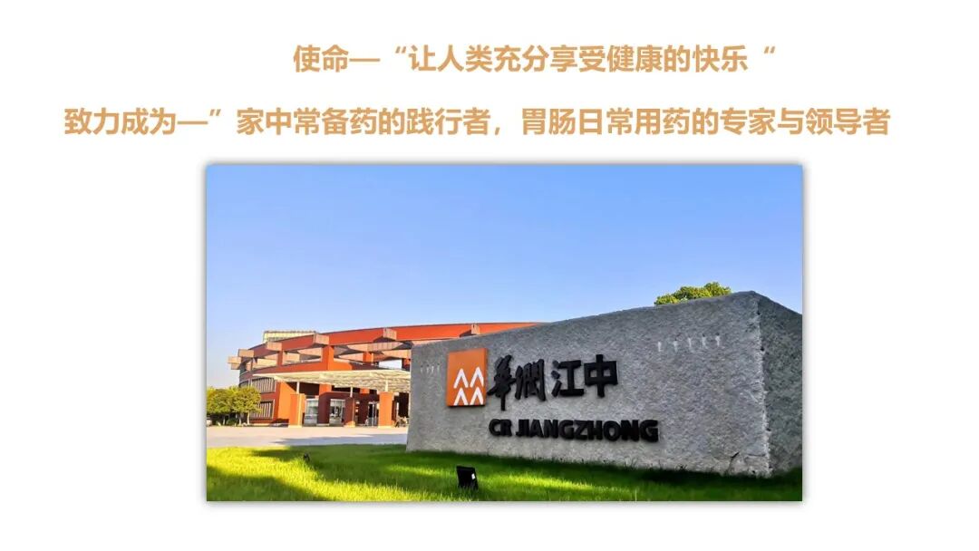 李时珍在《本草纲目》里面说到 “急则治标,缓则治本”,那么我们 50 年江中一直秉承“让人类充分享受健康的快乐”作为企业的使命,一直致力于要成为家中常备药的践行者,胃肠日常用药的专家和领导者。