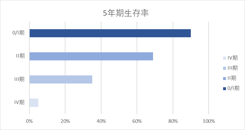 根据美国联合癌症委员会(AJCC)对结直肠癌的分期统计表明,0/Ⅰ 期的结直肠癌患者 5 年期存活率高达 90%以上,而 Ⅳ 期的 5 年期存活率仅为 5%~7%8。