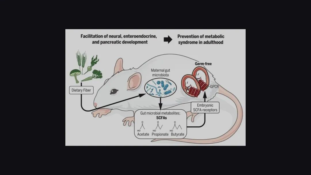 同时发现,如果孕鼠吃低膳食纤维的饮食,它生下来的孩子再吃高脂的饮食也有类似的情况,就是会容易更胖,代谢综合征也会更严重,也就说明了母鼠对后代的健康是起到非常重要的作用。