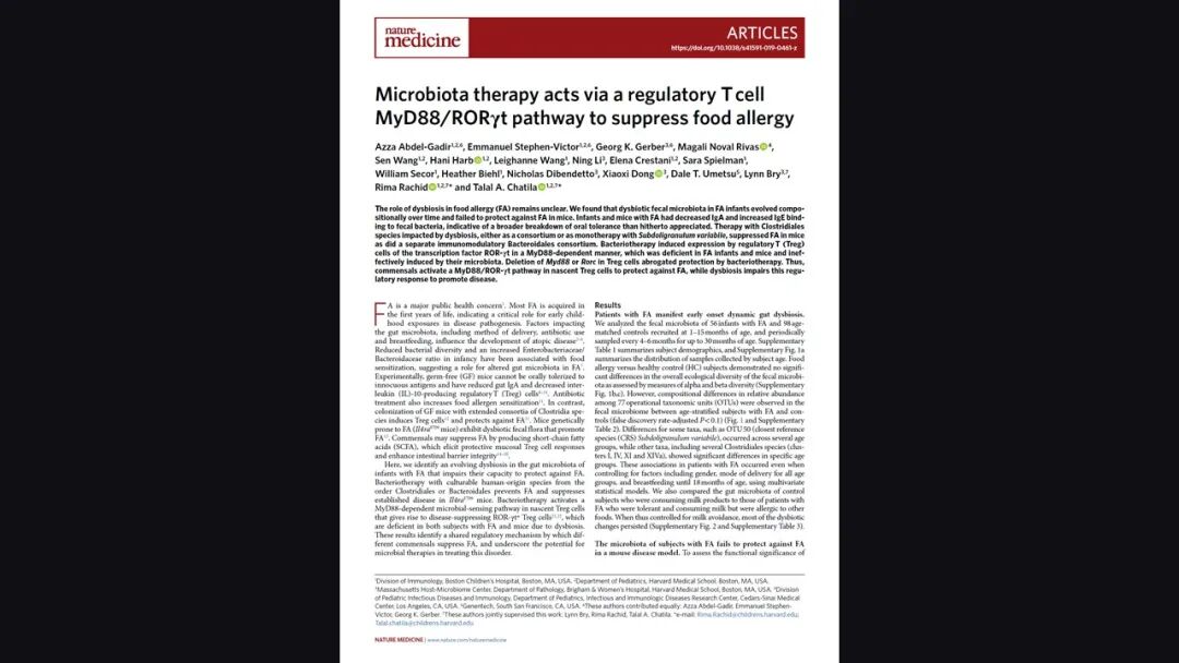同时对于我来讲,非常兴奋的是看到类似这一项研究——就是通过菌群的疗法去干预食物过敏。