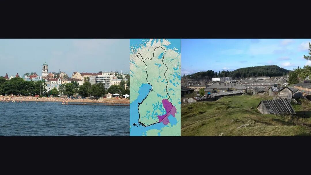 第一个故事,屏幕上的地图大家可能非常陌生。黑框之内这是一个地区,这个地区叫卡累利阿地区。那么它的左边是芬兰,已经发展成了一个现代、非常发达的社会;右边还是俄罗斯,以前的苏联。