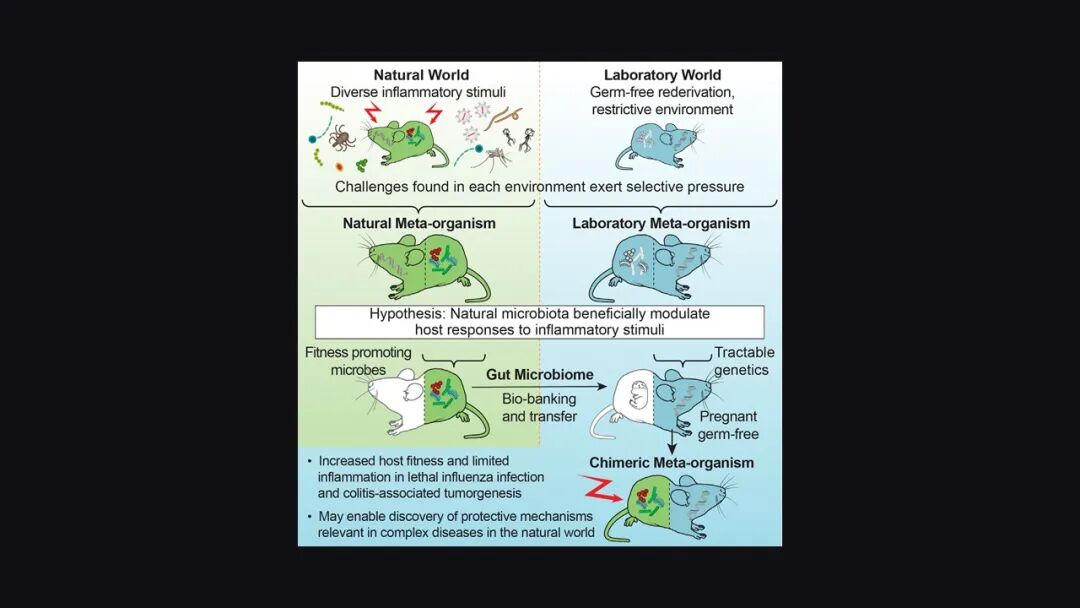 也就是说,野外小鼠更加多样化的肠道菌群让肠道菌群的多样性比较差的实验鼠产生了更强的免疫力去抵抗流感病毒的攻击。