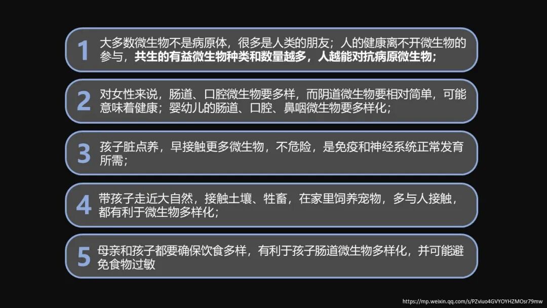 后来我想想我在 15 年写的这一篇文章叫《79 个超强微生物知识,全力助你孕育 99 分超优宝宝》当中,其实有大量的观点、举证的大量文献确实是关于不脏不净的。它们的关键的意思也像杨老师强调的一样:不脏不净吃了没有病,但是太脏太净也会得病。