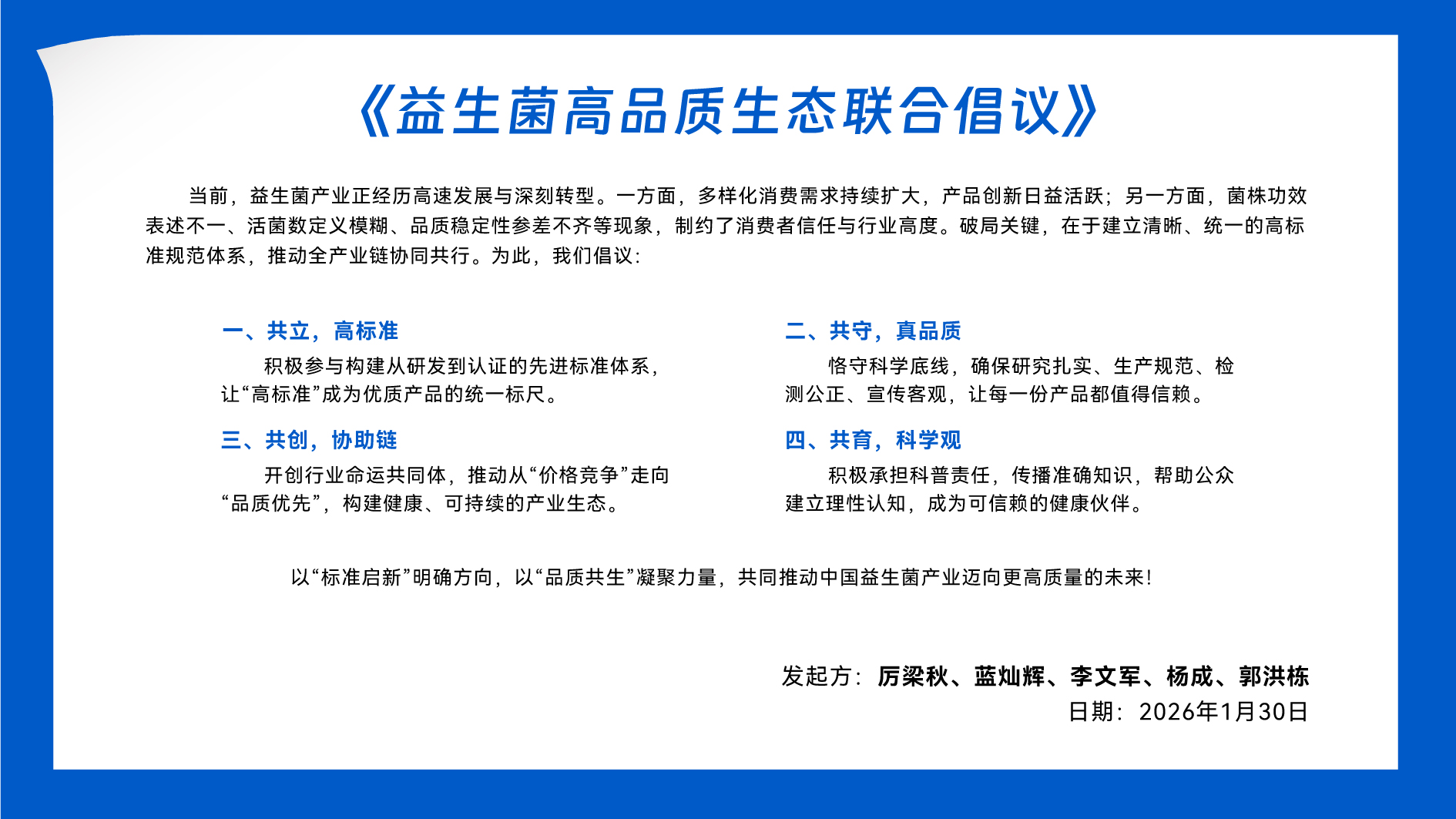 会议最后,与会嘉宾共同发起了《益生菌高品质生态联合倡议》,号召全行业坚守品质初心,深化产学研用合作,共同构建全球健康产业信用体系的“中国方案”。