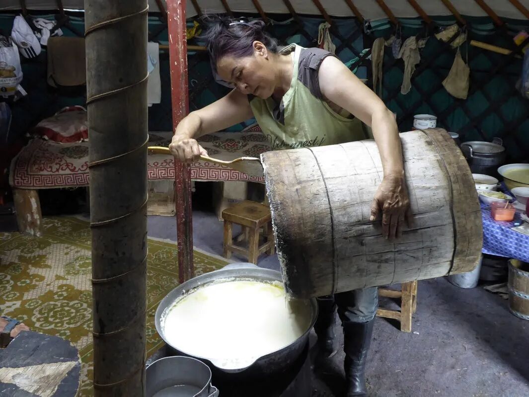 蒙古的奶制品种类繁多,蒙古人饲养的 7 种牲畜都要挤奶:牛、绵羊、山羊、马、牦牛、驯鹿和骆驼。