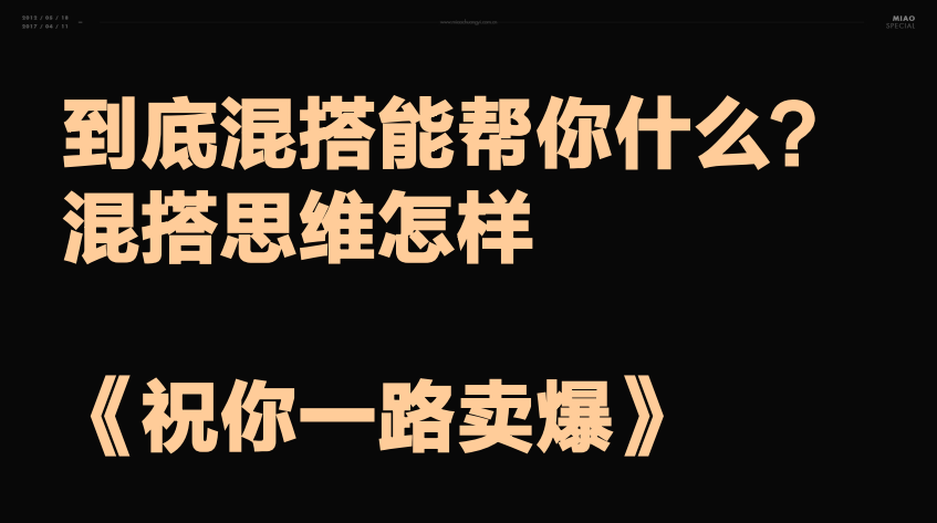 那么混搭思维到底能帮你做什么吗?我觉得非常重要的第一个点,它是可以助你一路卖爆的。因为混搭可以帮助你跳出竞争,让你跟隔壁不一样。