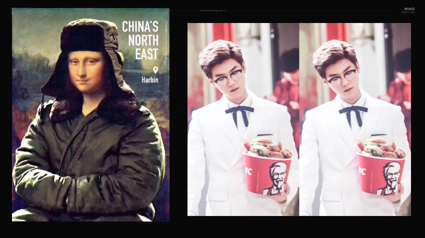 你大脑里边,你接触的文化和那种意识形态的这种状态是混搭的。像蒙娜丽莎也是东北的,鹿晗也是肯德基爷爷。就是很多很多的行为它本身就是混搭的。中国现在的这几代人,他接受到的事物就是混搭的。