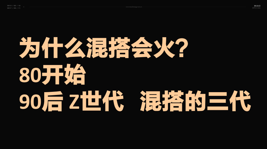混搭这个概念,为什么会在现在这么的流行?我觉得流行有两点。第一点就是,我们进入了混搭的一个时代。不管是 90 后也好,还是Z世代也好,包括我们 80 后也好,其实他们都是国际化的三代人。