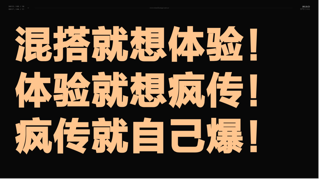 所以你不混搭你就丧失了主流人群的传播能力,就丧失了一个流量自发的这种构筑的一种行为。所以一定要去做混搭,我觉得这是符合现在当代人的一个生活习惯的一个行为。