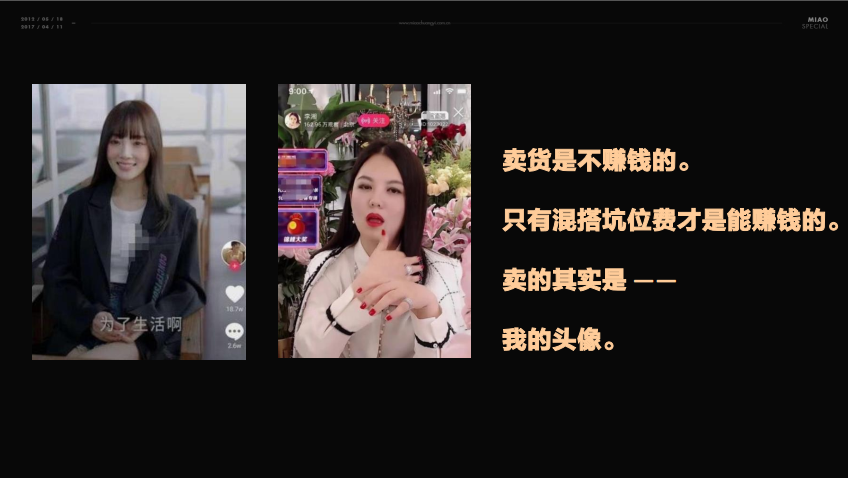 包括这两天我们在看直播卖货很热。直播卖货,本质上是收坑位费的吧,其实本质上收智商税的。因为这个羊毛出在猪身上,靠坑位费买单。它其实也更多的是在通过打散名人的这种单位时间,变成一个又一个坑位去卖。它其实也是混搭的一个商业模式。