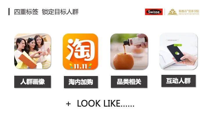 我举个例子,比如说我想去推中老年人的钙片。我就会去想试一下,在网上有广场舞标签的人是不是很有可能能够进入到我店里买钙片,买关节保护的氨糖这个品类。