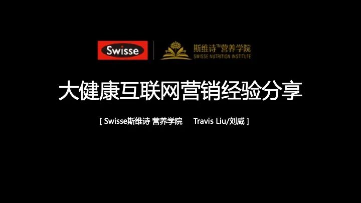 今天跟大家分享的题目是《大健康互联网营销经验分享》。因为很多人都知道斯维诗是一个在线上有非常强势地位的营养品品牌,所以也希望我们今天的分享能够对于大家的工作,或者说更好的认识我们的品牌能够有所帮助。