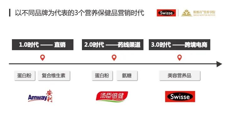 首先我们说,第一,1.0 时代,叫做以直销为代表的营养品的时代。