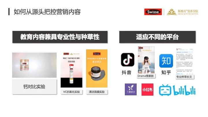 所以我可能每个媒体平台上面都会放钙片的实验内容,但是我可能讲话的方式、跟这个平台上面目标消费者沟通的方式会有所不同。这个是我们在整个内容开发,包括沟通到消费者这个过程当中非常重要的一个策略。