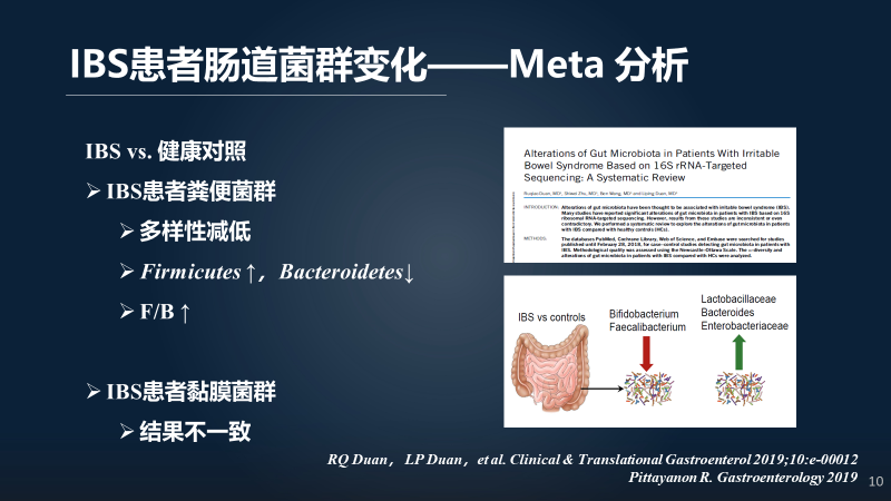 那么对于肠易激综合征(IBS)病人的肠道菌群的变化呢?也有一些相关的研究显示,确实 IBS 的病人肠道微生态会有明显的变化。