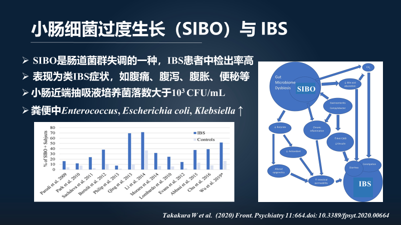 现在的研究发现,实际上在我们诊断为肠易激综合征病人的这些人群里边,小肠细菌过度生长的检出率也高,也就是说换句话说,这两种疾病的合并存在的情况大概能到 30~40%,可能还有的研究中这个比例会更高。