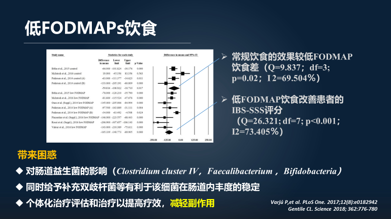 我们通过一些临床的研究也确实能够发现,如果我们给这些病人用这个低 FODMAP 饮食或者剔除某些病人觉得吃了以后不舒服的饮食以后,病人的症状能够得到改善。那也有一些荟萃分析研究支持这个结论。