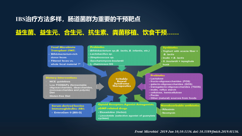 IBS 的微生态治疗,其实方法已经有很多了,无论是你给他补充益生菌、益生元、合生元,还是通过饮食的调节。随着我们这个研究技术的进步,我们就会看到这个不仅仅是我们给点好的菌或者是菌的粮食。