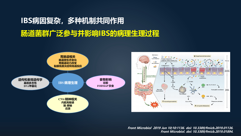 那么如果这些病人有明显的肠道微生态的不正常、肠道的菌群紊乱,那我们觉得通过微生态的调节应该能够改善和治疗这类病人,所以肠道微生态的干预治疗也成为 IBS 治疗的一个非常重要的靶点。