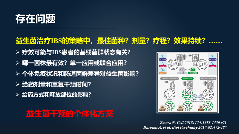 其实核心的问题在于比如说我们这个病人,他适合用哪种菌来治疗?那这个病人的肠道菌群的基础状态如何?那这个病人的机体免疫状态如何?这个益生菌,我们给的这个单剂还是混合菌?那给多长时间?这个药物要维持吗?还是中间要间断?等等等等。