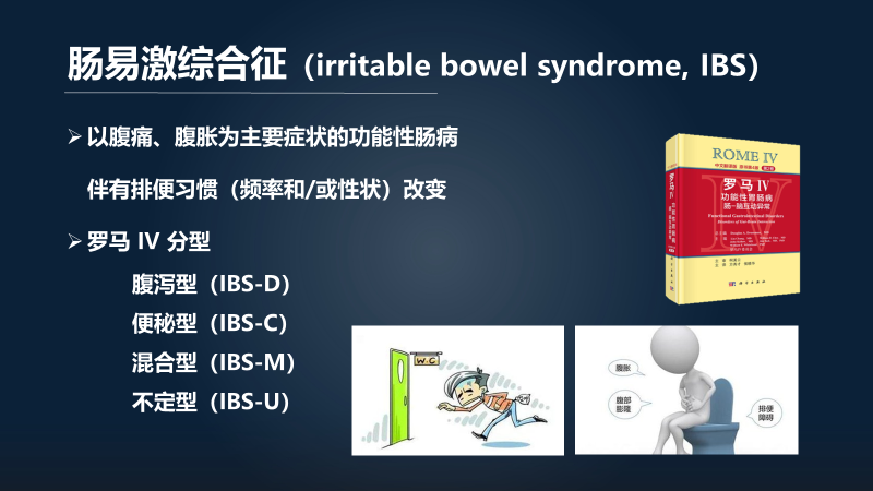 肠易激综合征是我们消化科大夫在门诊常见的一类疾病。这样的一些病人的主要表现是腹痛、腹胀,伴有大便的改变,比如说大便频率和大便性状的改变。