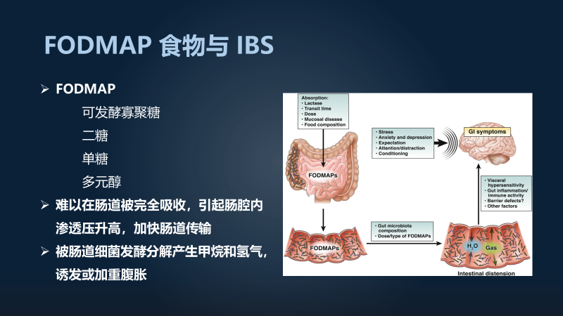 那么食物呢?我们刚才也提到有一些食物确实跟 IBS 病人的症状的产生有关系。